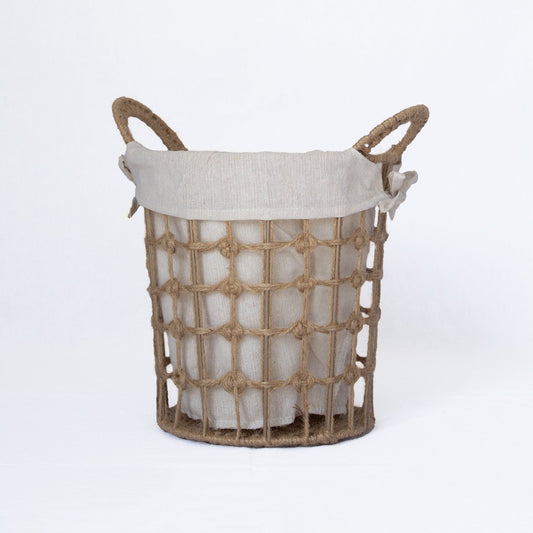 Round Hemp Tied Wire Basket with Hemp Fabric Inner