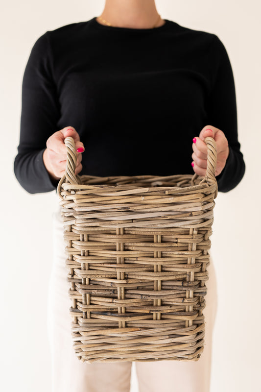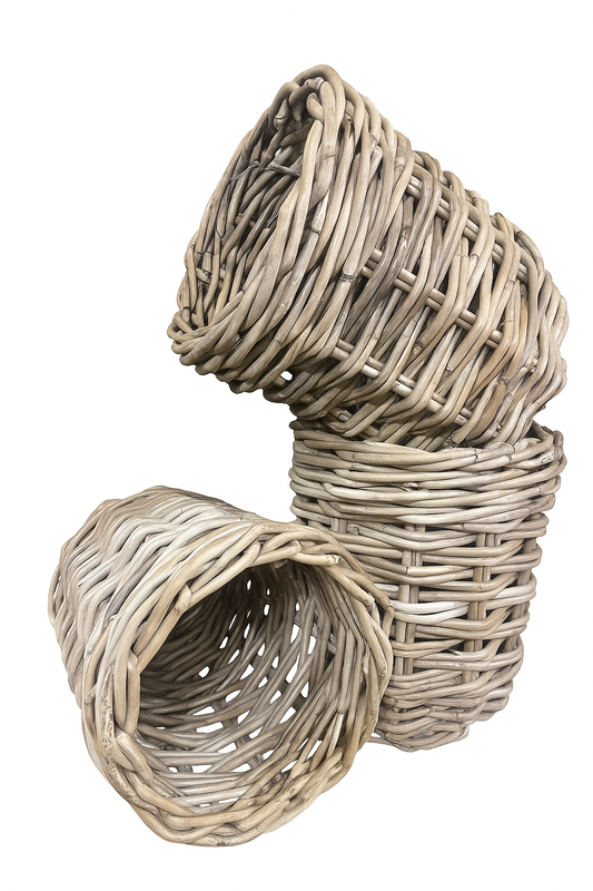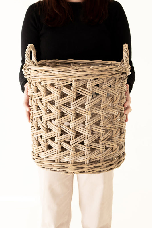 Rattan Open Weave Round Tapered Basket Kubu Grey
