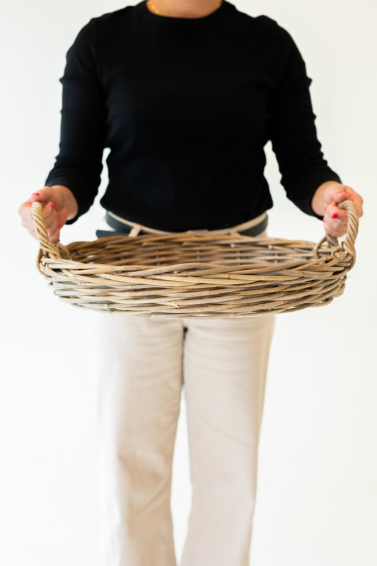 Sold outRattan Round Basket with Handles