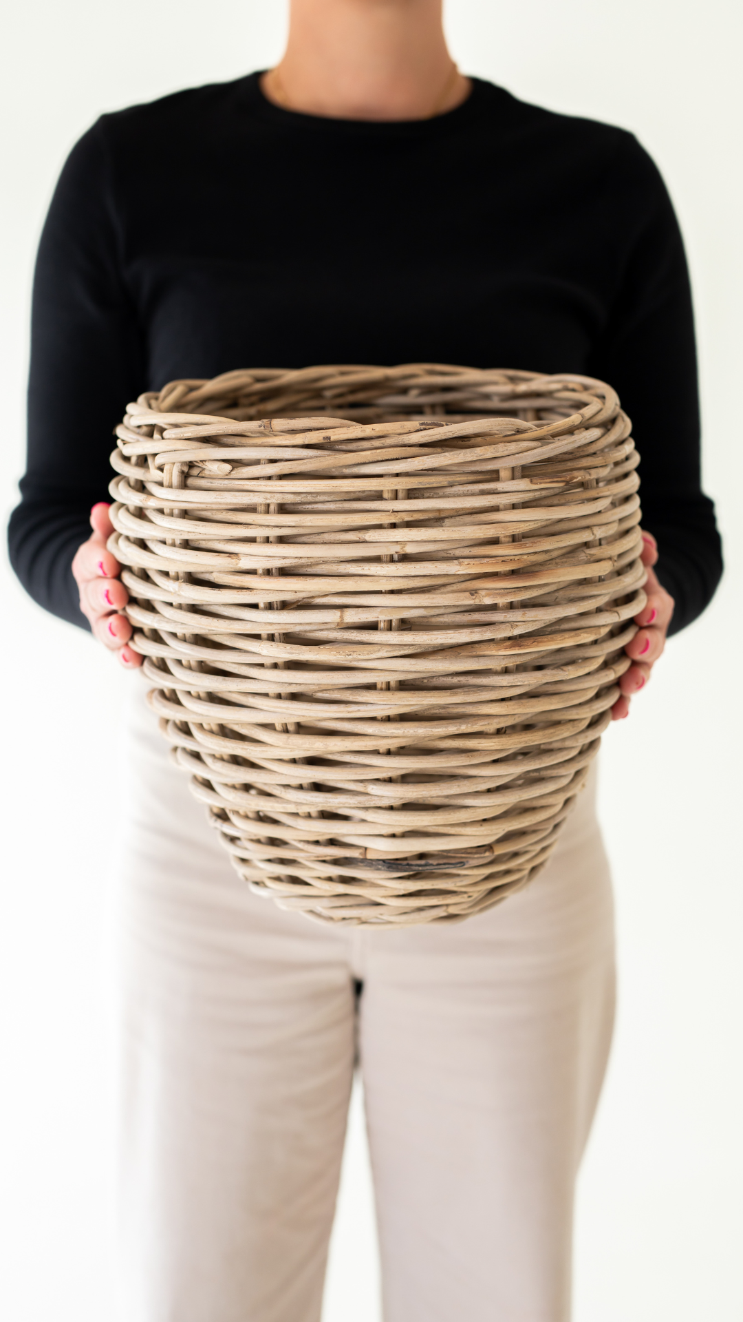 ✔️ Moisture Protection Recommended – No plastic liner included. To protect the rattan, place your potted plant inside with a plastic drip tray (not included) to allow for proper drainage and extend the lifespan of the basket.