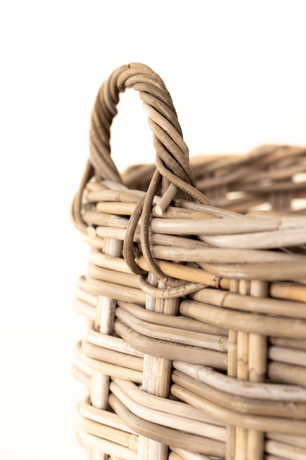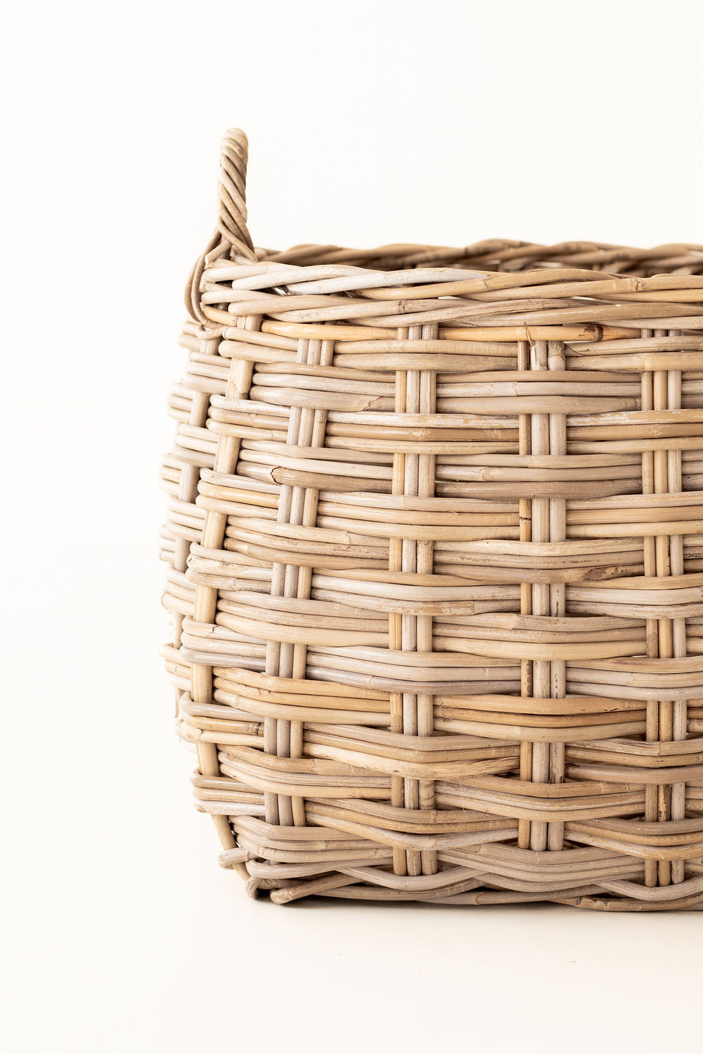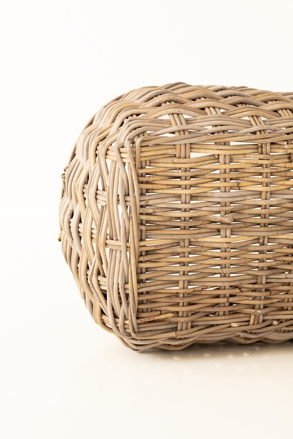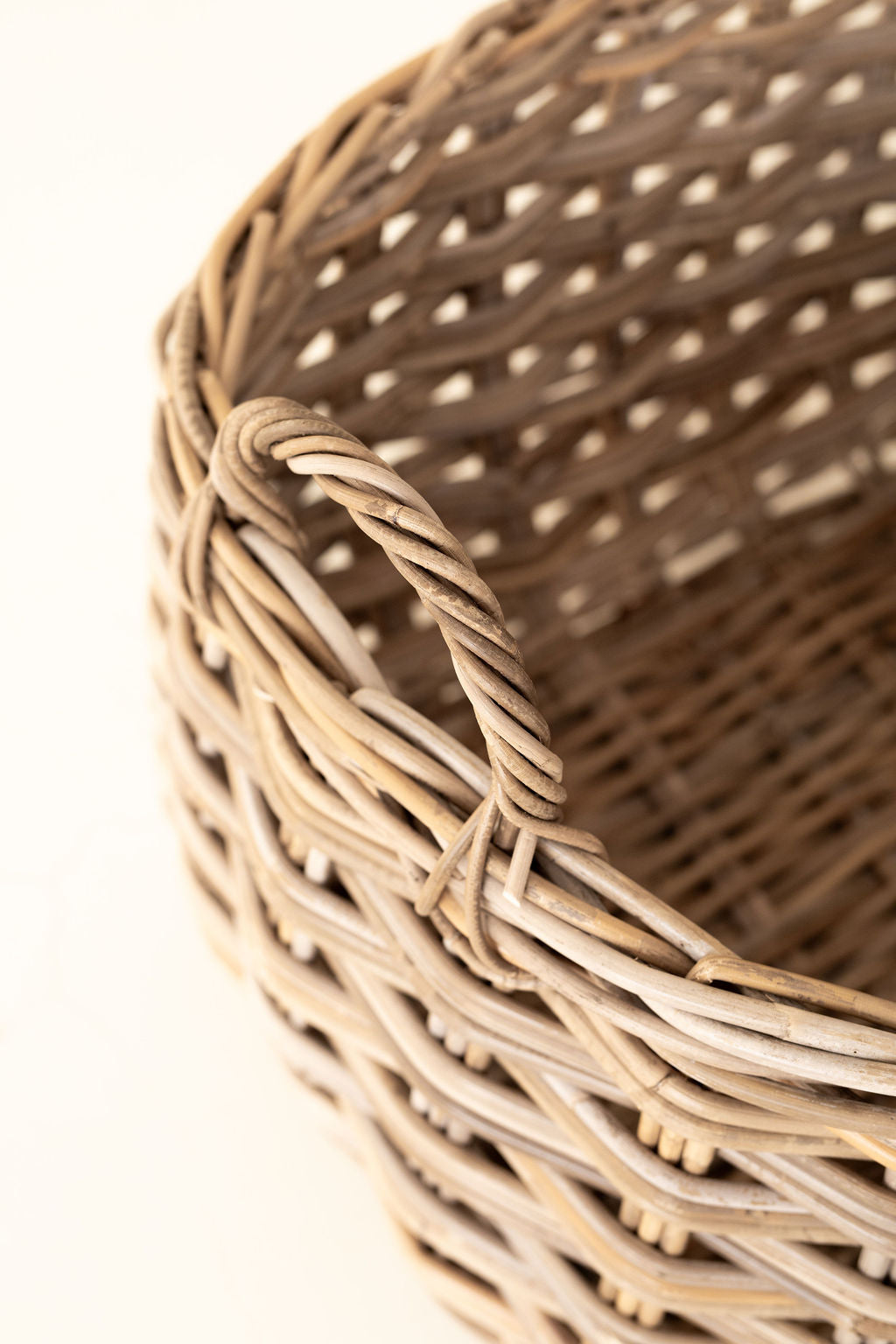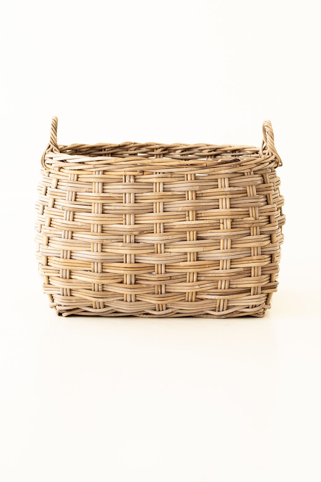 Rattan Rounded Oval Storage Basket – Handwoven Herringbone Design with Handles