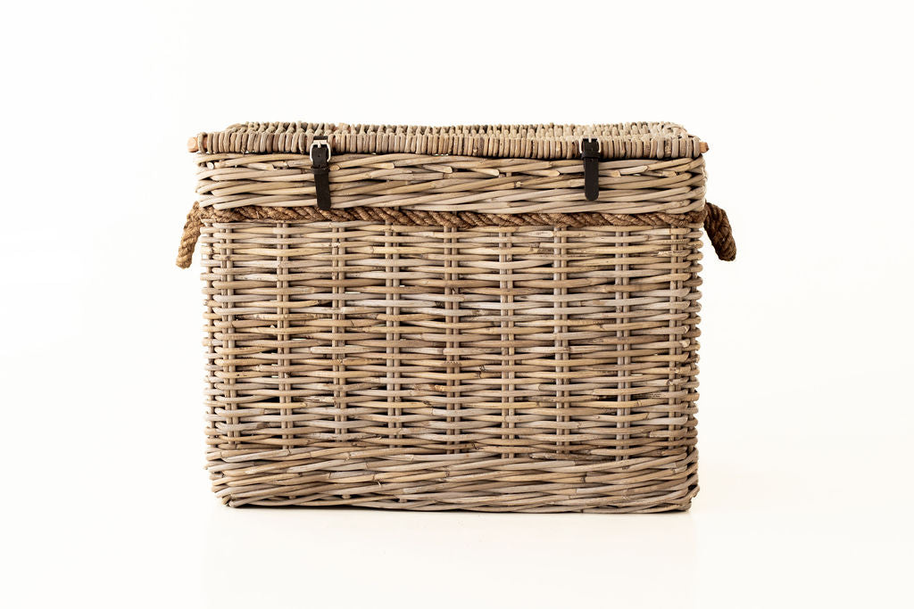 Rattan Lidded Chest with Rope detail - (Additional courier costs will apply)